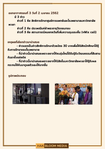 - ขาวแรกเปนขาวสิทธิการรักษาดวยบัตร 30 บาทเพื่อใหนิสิตนักศึกษาไดรู