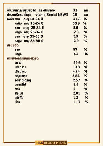 จำนวนการรับชมสูงสุด ครัวปายแดง 31 คน