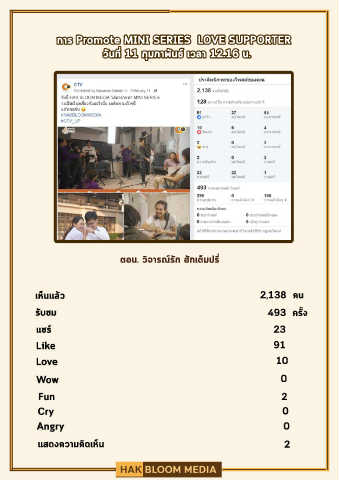 การ Promote MINI SERIES LOVE SUPPORTER วันที่ 11 กุมภาพันธ เวลา 12.16 น. ตอน. วิจารณรัก ฮักเต็มปรี่ 2,138 คน 493 ครั้ง 23 91 10 0 2 0 0 แสดงความคิดเห็น 2