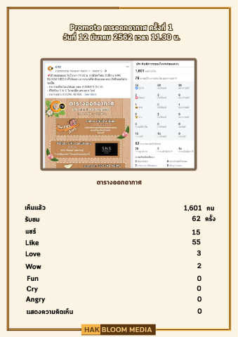 Promote การออกอากาศ ครั้งที่ 1 วันที่ 12 มีนาคม 2562 เวลา 11.30 น. ตารางออกอากาศ 1,601 คน 62 ครั้ง 15 55 3 2 0 0 0 แสดงความคิดเห็น 0