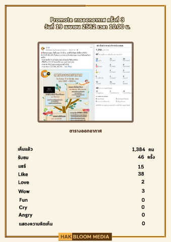 Promote การออกอากาศ ครั้งที่ 3 วันที่ 19 เมษายน 2562 เวลา 10.00 น. ตารางออกอากาศ 1,384 คน 46 ครั้ง 15 38 2 3 0 0 0 แสดงความคิดเห็น 0