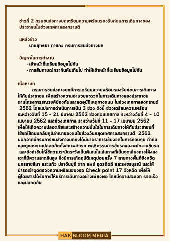 ขาวที่ 2 กรมขนสงทางบกเตรียมความพรอมรองรับกอนการเดินทางของ