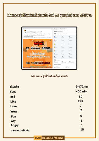 Meme พรุงนี้วันเลือกตั้งลวงหนา วันที่ 21 กุมภาพันธ เวลา 17.57 น. Meme พรุงนี้วันเลือกตั้งลวงหนา 9,472 คน 406 ครั้ง 89 297 7 2 0 1 1 10