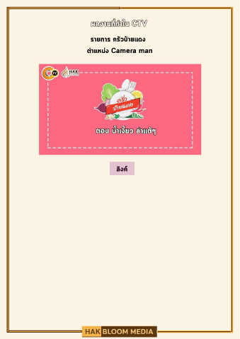 ผลงานที่ทำใน CTV รายการ ครัวปายแดง ตำแหนง Camera man ลิงค