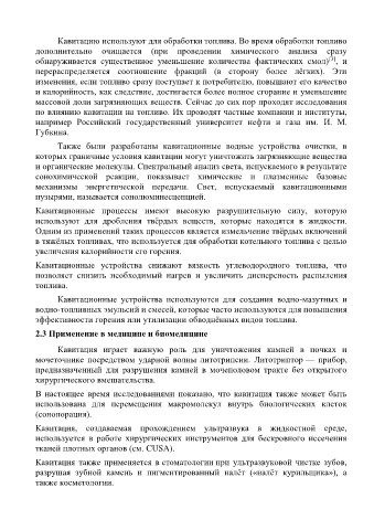 Кавитацию используют для обработки топлива. Во время обработки топливо