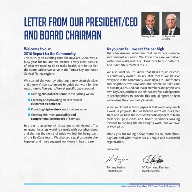 V. Raymond Ferrara Alan Bomstein Gay Lancaster This is truly an exciting time for BayCare. was a and personal endeavor. We know the care we deliver