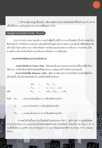 จะเพิ่มขึ้นเรื่อยๆ ณ จุดที่ค่า MU เท่ากับศูนย์ ค่า TU จะมากที่สุดและในช่วงที่ค่า MU เป็นลบ ค่า TU จะลดลง
