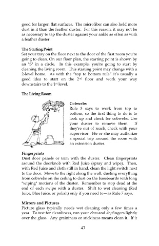 end of each swipe with a duster. Shift to wet cleaning (Red