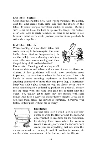 dust the lamp shade, bulb, lamp, and then the objects on the