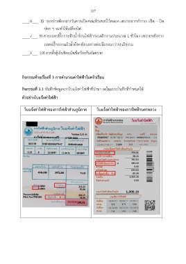 กิจกรรมที่ 3.1 บันทึกขอมูลจากใบแจงคาไฟฟาที่นํามา ลงในแบบบันทึกที่กําหนดให