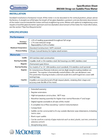 of the meter is recommended for meters without straightening vanes. Meters with optional straightening vanes