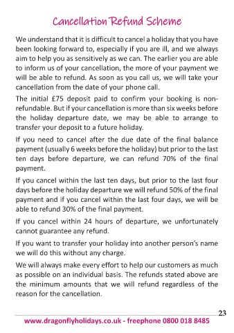 transfer your deposit to a future holiday.