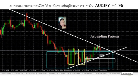 ภาพแสดงการคาดการณ์โดยใช้ การวิเคราะห์พฤติกรรมราคา ค่าเงิน AUDJPY H4 96