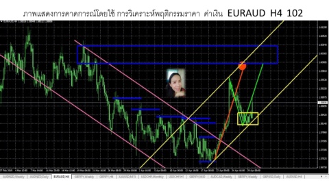 ภาพแสดงการคาดการณ์โดยใช้ การวิเคราะห์พฤติกรรมราคา ค่าเงิน EURAUD H4 102