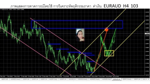 ภาพแสดงการคาดการณ์โดยใช้ การวิเคราะห์พฤติกรรมราคา ค่าเงิน EURAUD H4 103