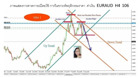 ภาพแสดงการคาดการณ์โดยใช้ การวิเคราะห์พฤติกรรมราคา ค่าเงิน EURAUD H4 106