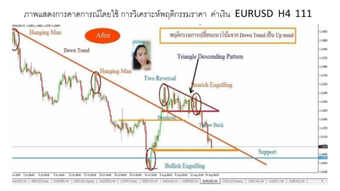 ภาพแสดงการคาดการณ์โดยใช้ การวิเคราะห์พฤติกรรมราคา ค่าเงิน EURUSD H4 111