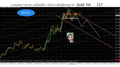 ภาพแสดงการคาดการณ์โดยใช้ การวิเคราะห์พฤติกรรมราคา Gold H4 117