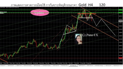 ภาพแสดงการคาดการณ์โดยใช้ การวิเคราะห์พฤติกรรมราคา Gold H4 120