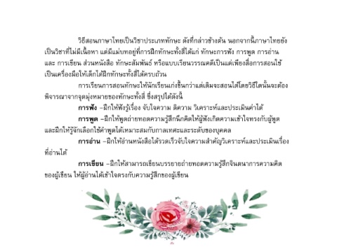วิธีสอนภาษาไทยเป็นวิชาประเภททักษะ ดังที่กล่าวข้างต้น นอกจากนี้ ภาษาไทยยัง