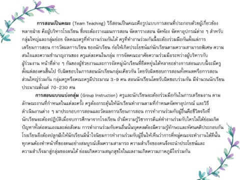การสอนเป็นคณะ (Team Teaching) วิธีสอนเป็นคณะคือรูปแบบการสอนที่ประกอบด้วยผู้เกี่ยวข้อง