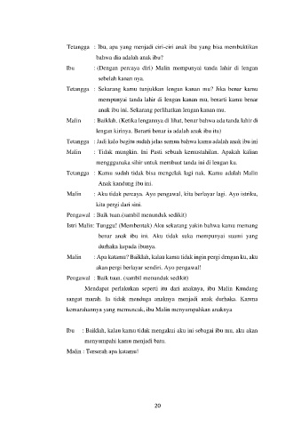 Ibu : (Dengan percaya diri) Malin mempunyai tanda lahir di lengan