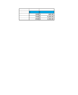 X Y 1000 $ 600.00 7500 $ 4,500.00 2500 $ 1,500.00