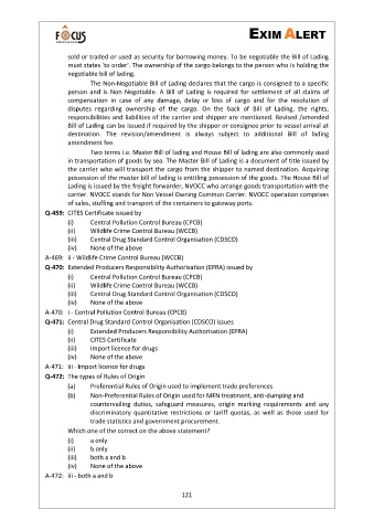 sold or traded or used as security for borrowing money. To be negotiable the Bill of Lading