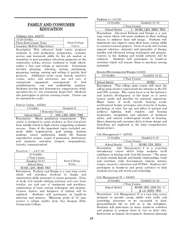 Grade(s) 10-12 Earn College and nutrition, child development, fashion, interior