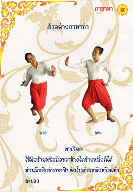 ภำษำท่ำ ๔ ตัวอย่ำงภำษำท่ำ นำง พระ ท่ำเรียก ใช้มือซ้ำยหรือมือขวำข้ำงใดข้ำงหนึ่งก็ได้ ส่วนมืออีกข้ำงจะจีบส่งไปด้ำนหลังหรือเท้ำ สะเอว