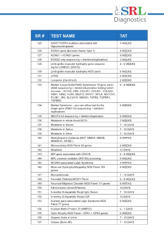 SR # TEST NAME TAT