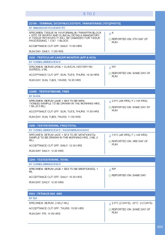 SPECIMEN: SERUM (AGE + SEX TO BE MEN- 2-8°C (48 HRS); F ( >48 HRS)