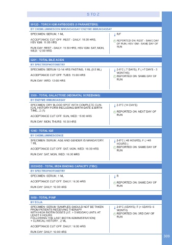 SPECIMEN: SERUM, AGE AND GENDER IS MANDATORY. 2-8°C ( 48 HOURS); F ( >48