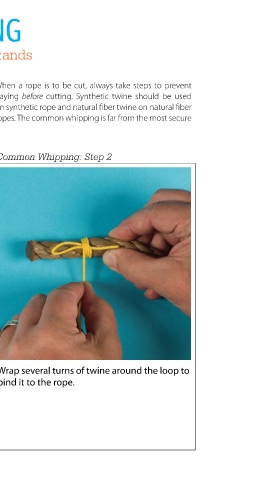 end of a rope or line with strong, thin twine to prevent fraying before cutting. Synthetic twine should be used
