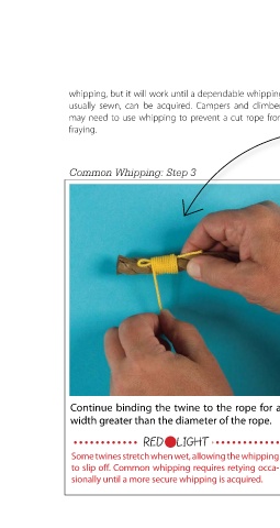to slip off. Common whipping requires retying occa-