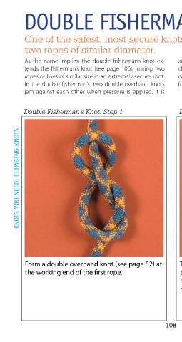 As the name implies, the double fisherman’s knot ex- an excellent choice when using synthetic cordage, in-