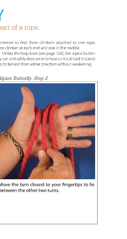 clipped or otherwise attached. It is often used in climb- Unlike the loop knot (see page 126), the alpine butter-
