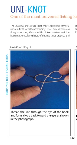 The universal knot, or uni-knot, meets just about any situ- patience. It can be used to snell a hook (see page 142); to