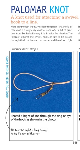 More secure than the swivel knot (see page 144), the Palo- be difficult to tie in lines with multiple hooks or another