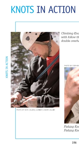 Knots in aCtion Climbing Knot: Figure 8 with follow through with double overhand Knots in aCtion photo by stephanie young merzel photo by kate calder, climber is mark calder Fishing Knot: Tying Fishing Knot 196