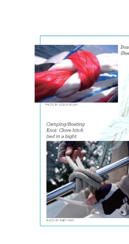Boat Knot: Square Knots in aCtion (Reef) Knot Climbing Knot: Munter-Mule hitch with Figure 8 backup photo by jessica keogh Camping/Boating Knot: Clove hitch tied in a bight photo by dwayne campogan photo by andy pixel 197