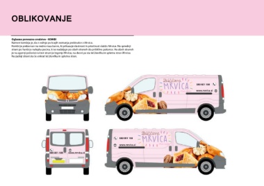 Kombi je prebarvan na nežno roza barvo, ki prikazuje slastnost in prisrčnost slaščic Mrvice. Na sprednji