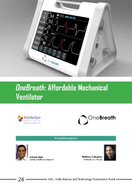 OneBreath: Affordable Mechanical Ventilator Principal Investigators Ashwin Naik Matthew Callaghan Vaatsalya Healthcare, Bangalore OneBreath, Inc., Palo Alto 26 U.S. - India Science and Technology Endowment Fund