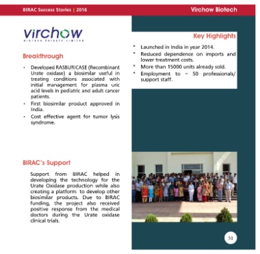 • Developed RASBURICASE (Recombinant * More than 15000 units already sold.