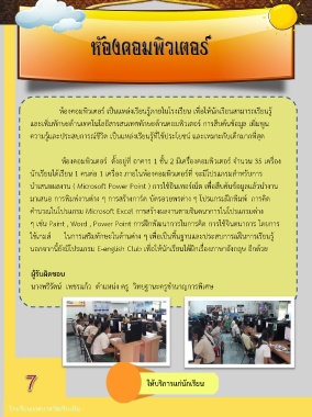 ห๎องคอมพิวเตอร์ เป็นแหลํงเรียนรู๎ภายในโรงเรียน เพื่อให๎นักเรียนสามารถเรียนรู๎
