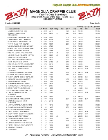 Team Members Evt #Fish Wgt Pnlty Bns B/F * Total Pts Bns Total