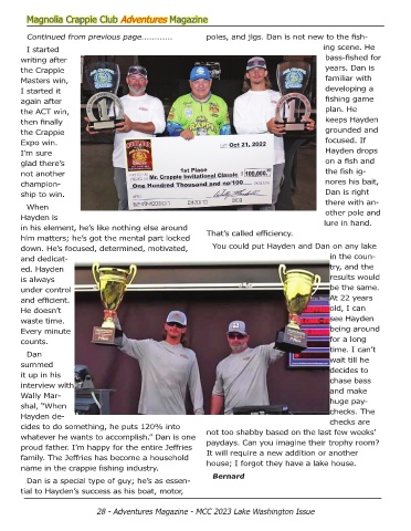Continued from previous page............ poles, and jigs. Dan is not new to the fish-
