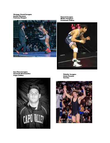 Orange Coast League Justin Thomas Calvary Chapel Sunset League Blake Vasquez Fountain Valley Sea View League Gerardo Hernandez Capo Valley Trinity League Liam Cronin Servite