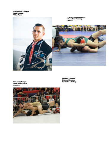 Crestview League Josh Lutton Villa Park Pacific Coast League Brandon Tierney Irvine Freeway League Josh Kawaguchi Sonora Orange League Eliezer Mendez Santa Ana Valley