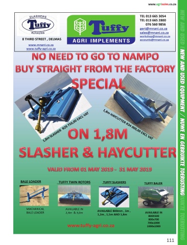 www.agrisales.co.za NEW AND USED EQUIPMENT / NUWE 111 NEW AND USED EQUIPMENT / NUWE EN GEBRUIKTE TOERUSTING E EN GEBRUIKTE TOERUSTING
